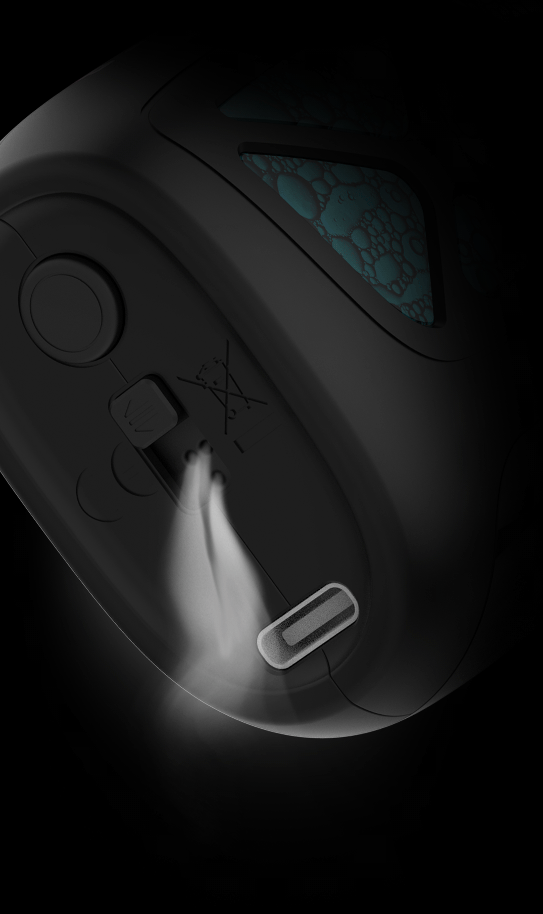 The device features a unique alien-inspired texture on one side, adding a fun and aesthetically pleasing detail.