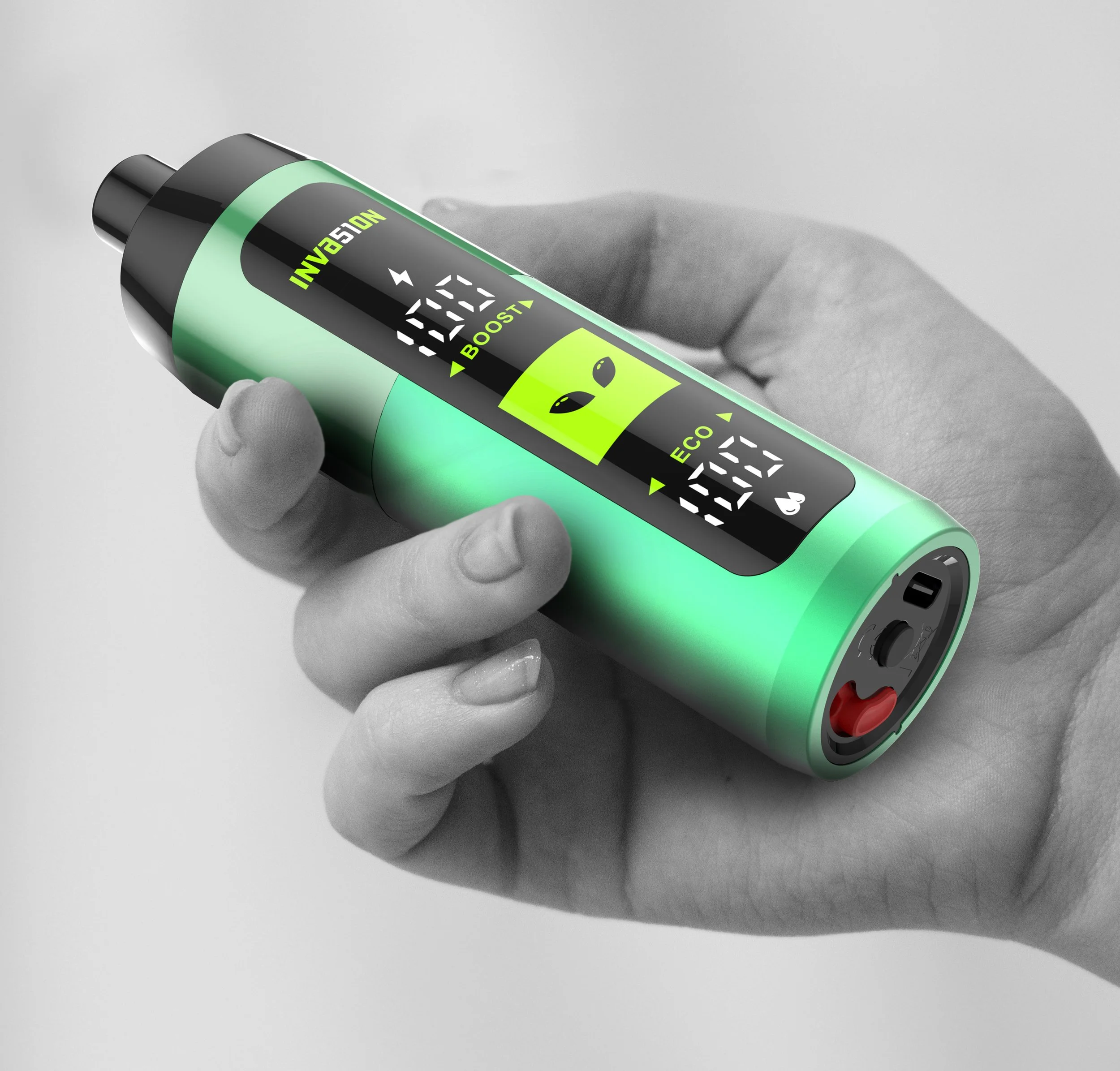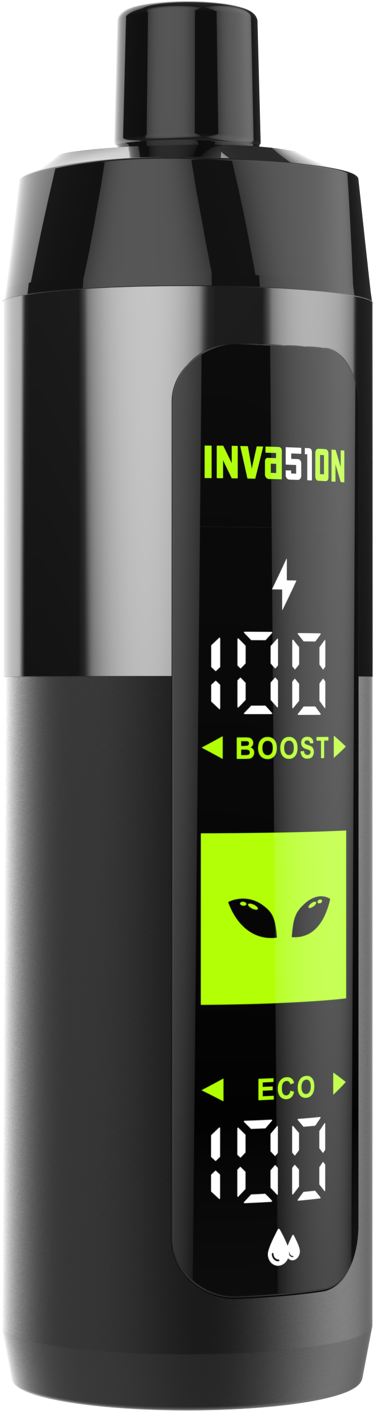 The Invasion UFO Vape puts you in control of your vaping journey with its personalized settings. Engage the Boost Mode for an intense vapor production and heightened flavor, or switch to Eco Mode to conserve battery life and extend your e-liquid. Fine-tune your draw with the adjustable airflow control, allowing you to customize the resistance to your preference. And when it's time to recharge, the convenient Type-C charging port ensures a quick and efficient power-up, keeping your personalized vaping experience ready whenever you are.